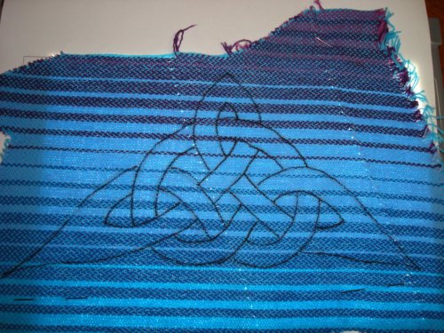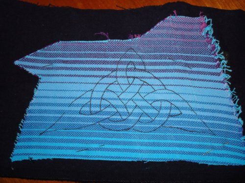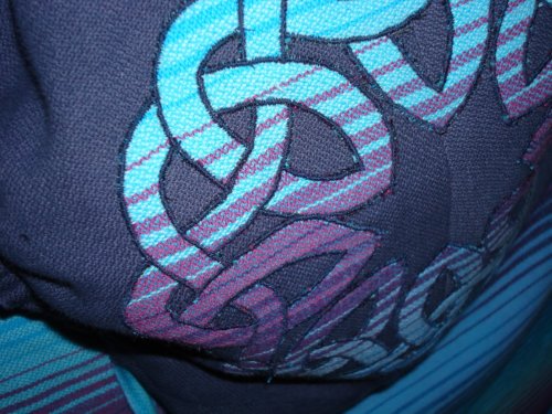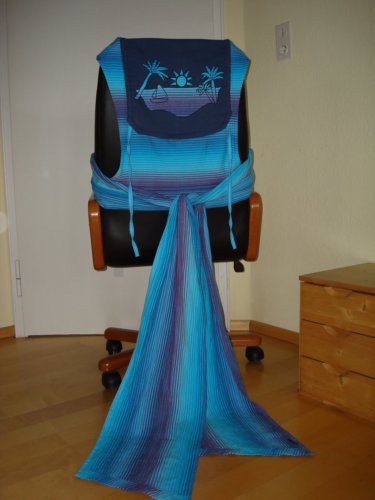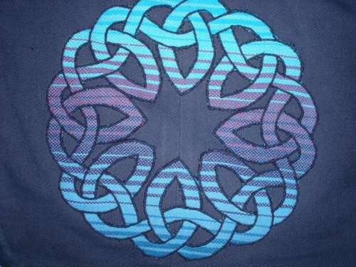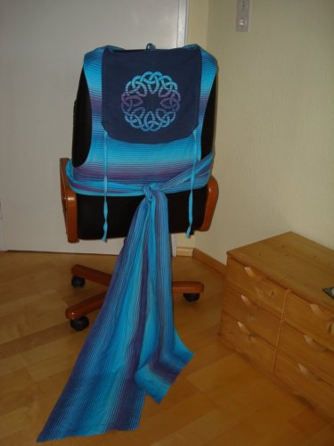 Wer sich so etwas noch nicht zutraut, kann die hier gefertigte Appli bekommen. Sie ist auf einem Stück dicken, weichen dunkelblauen Köper genäht, der 38 cm breit und 18 cm hoch ist. Schreibt es mir einfach beim Kommentar dazu.