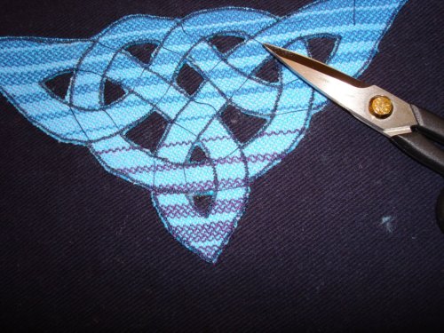Damit werden noch einmal alle Linien entlang genäht. Dabei werden auch die Linien genäht, die vorher nicht genäht wurden, weil dort nicht entlang geschnitten werden musste. Bei meinem Motiv habe ich keine “innenliegenden” Nähte, hier kann man aber sehen, was ich meine: