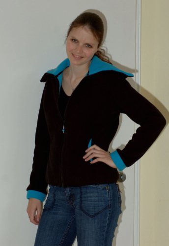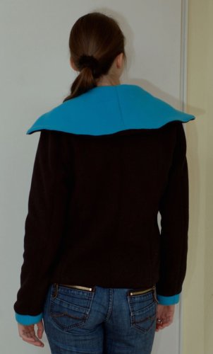 Vorhin habe ich dann einmal Probe genäht. Sie ist eigentlich schon ganz ordentlich geworden, ein paar Verbesserungen werde ich sicher noch machen, wenn sie anprobiert worden ist.