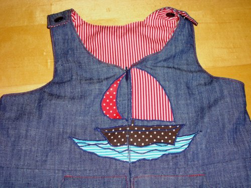 Meine letzte Latzhose habe ich gleich in doppelter Stofflage zugeschnitten (und prompt die falschen Teile zusammen genäht 🙂 ). Jetzt bin ich endlich dazu gekommen, auch die zweite zu vernähen.