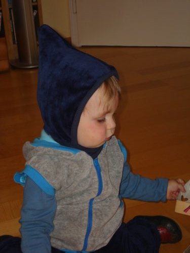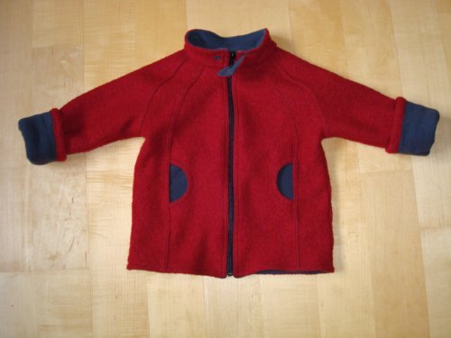 Ich war lang am überlegen, ob ich für meinen Süßen auch eine Jacke nähe. Ich bin dann in den Stoffladen und habe relativ schnell einen schönen roten Wollwalk gefunden und dann ewig nach einem passenden Futter gesucht. Es sollte warm, dünn und atmungsaktiv sein. Nachdem ich Nicki, Jersey und Flanell verworfen hatte, habe ich einen wunderbar hochwertigen dünnen Fleece gefunden, der atmungsaktiv ist. Beide Stoffe ließen sich toll vernähen und mit dem Ergebnis bin ich sehr zufrieden, da die Jacke nicht ganz so ökö aussieht.