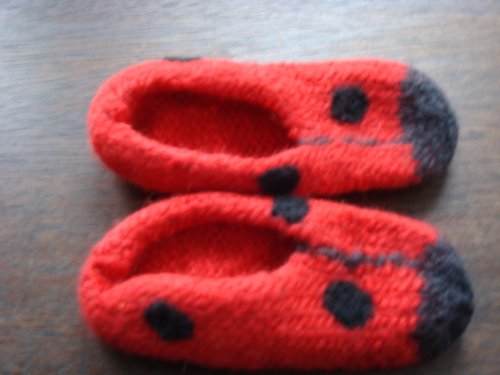 Wunderschöne Marienkäfer-Filz-Puschen für meinen Kleinen. Sie sind noch etwas zu groß, aber Kinderfüße wachsen ja schnell. Vielen Dank liebe Steffi F.!!!!