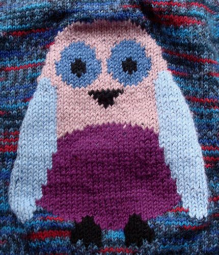Der Pulli ist aus Sockenwolle gestrickt und nachher mit Merino bestickt. Das Muster habe ich selbst entworfen.