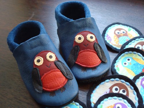 Der Kleine Mann ist im Moment im Eulenfieber. Ich habe ihm schon vor einigen Tagen ganz viele Eulenbuttons genäht, da mussten dann auch noch Eulenschuhe her. Ein bisschen zu groß sind sie noch, das ändert sich aber bestimmt ganz schnell.