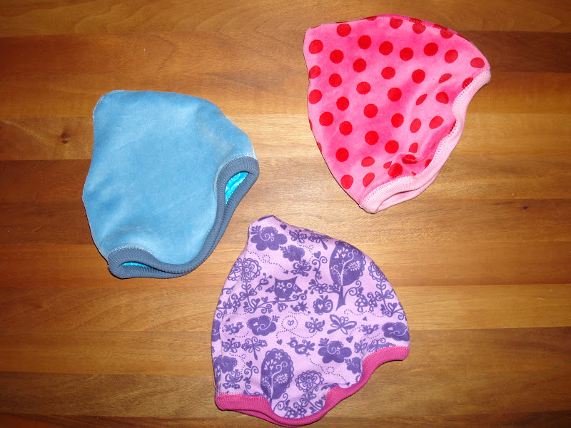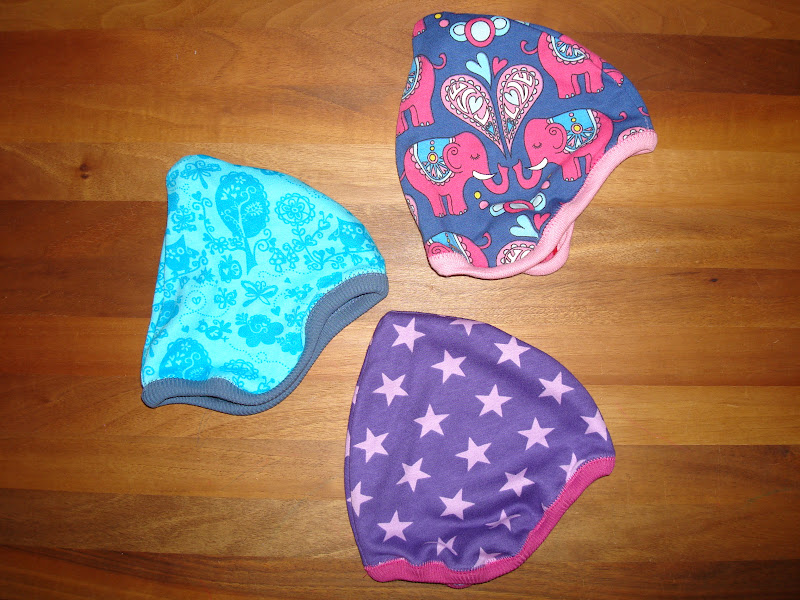 Deshalb habe ich noch ein paar Mützen nähen müssen. Die ersten für Luisa passen natürlich schon nicht mehr.