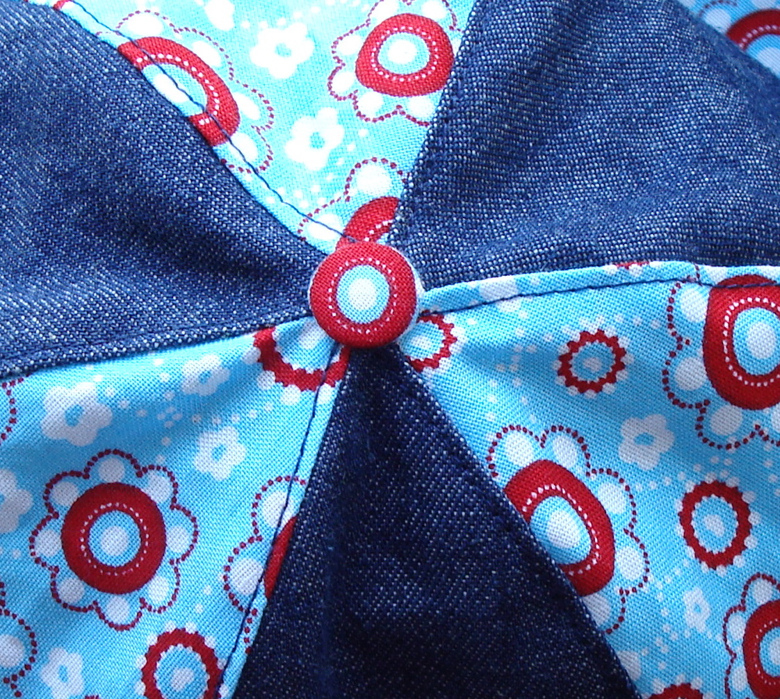 Innen habe ich mit Marienkäferbaumwolle gefüttert. Die Hüte sind wirklich super um Reste zu verwerten.