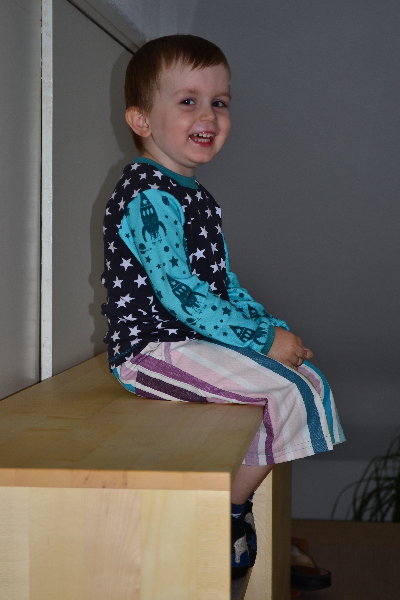 Leider wurde die Hose diesen Sommer etwas knapp. Außerdem reicht eine Lieblings-Hose nicht wirklich für den Urlaub. Deshalb habe ich am letzten Abend, bevor wir ins Allgäu gefahren sind mich noch an die Nähmaschine gesetzt und eine weitere Hose nach dem Schnitt aus der Ottobre 3/2010 genäht. Diesmal wieder aus Ikea-Stoffen. Schön robust, aber trotzdem noch sommerlich bunt: