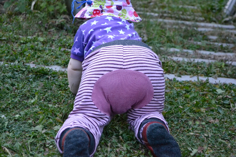 Da passt richtig viel rein. Gepolstert habe ich mit Bodenwischtüchern. Die habe ich zur Stabilität dann auch noch Rautenförmig abgesteppt.