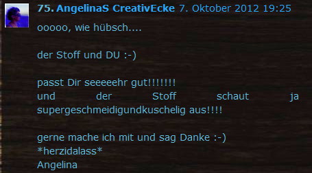 Wenn ihr meinen Stoff tatsächlich bestellt schickt mir bitte, bitte Fotos!!!!!!!