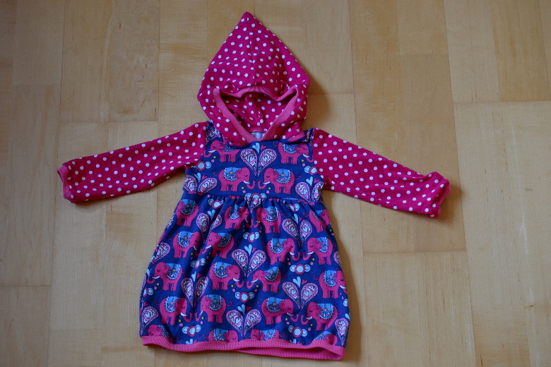 Und weil ich gerade so schön dabei bin, kommt hier auch schon das nächste Kleidchen. Diesmal aus Jersey für die Übergangszeit. Aus dem wunderschönen “Elephant Love” von Hamburger Liebe.