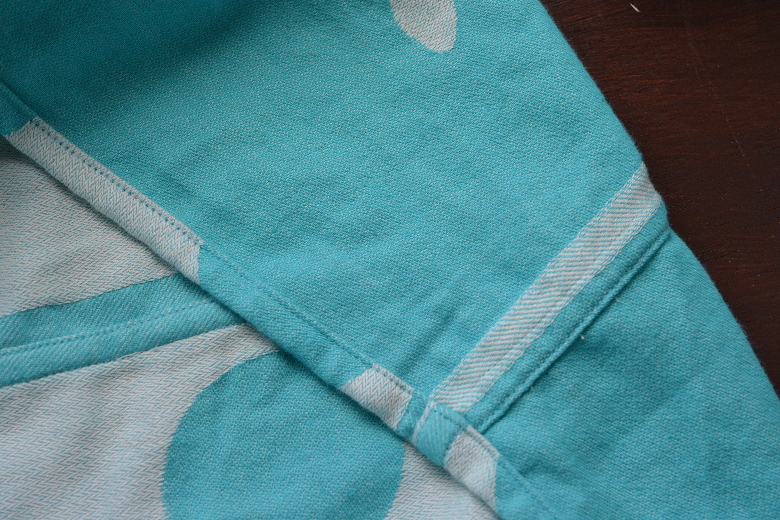 Ich habe den Saum aufgetrennt und beide Tuchbahnen so miteinander vernäht, dass es von beiden Seiten schön aussieht.