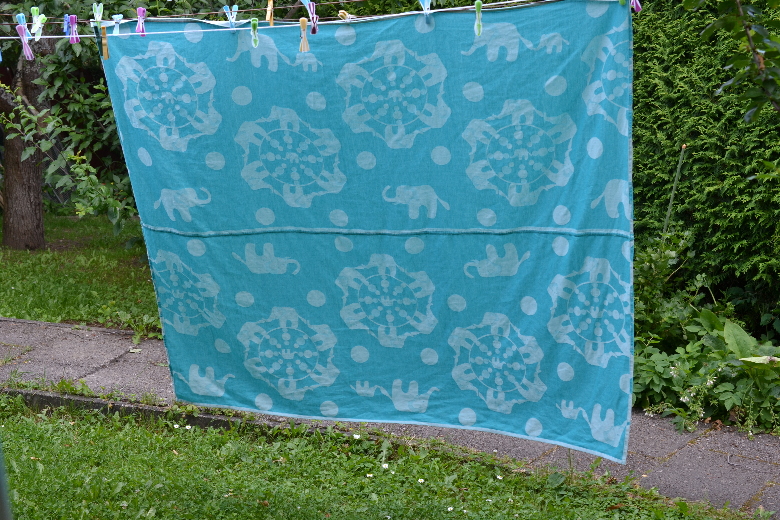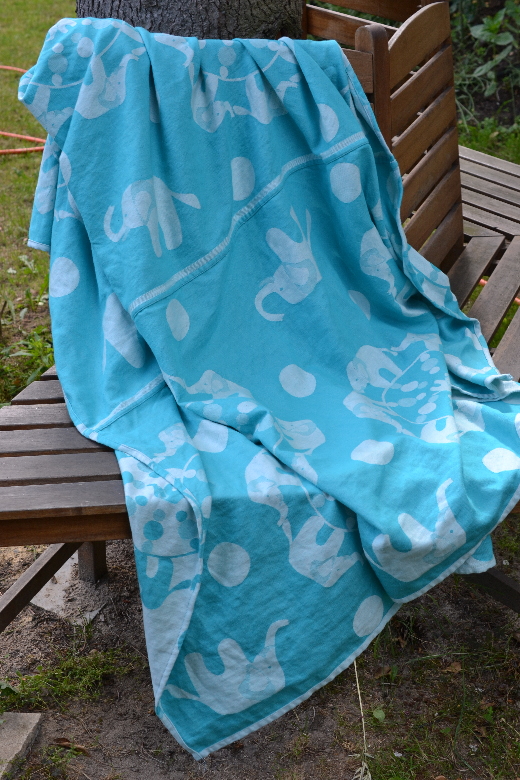 Mein Sohn liebt sie sehr. Das ist momentan seine Schlafdecke. Bei uns in der Wohnung wird es im Sommer sehr heiß, da ist so eine leichte, aber trotzdem sehr kuschelige Decke genau das Richtige. Außerdem gefällt ihm der Gedanke, dass ihn die Elefanten vor den Stechmücken beschützen (nicht das er diese Jahr schon mal gestochen worden wäre). Ich muss ihn dann immer ganz fest einwickeln – das liebt er sehr.