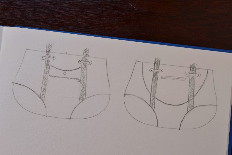 Bei der Gelegenheit möchte ich Euch so zum Abschluss noch mal den Entstehungsprozess dieser Tasche erzählen. Mein erster Gedanke als ich gehört habe, dass es bei uns in der Stadt jetzt endlich auch einen Stoffmarkt gibt war: Ich muss mir unbedingt mal eine schöne Tasche dafür nähen. Naja, eigentlich nicht nur für den Stoffmarkt, das wäre ja etwas übertrieben. Sie sollte zusätzlich noch als Schwimmbadtasche herhalten. Also habe ich mich erst einmal hingesetzt und gezeichnet. Im Kopf wusste ich eigentlich ganz genau, was ich haben wollte: Eckpatches, Gurtbänder und dazwischen eine aufgesetzte Tasche. Außerdem natürlich der Zip-It.