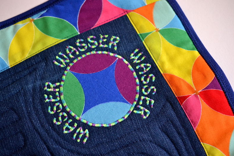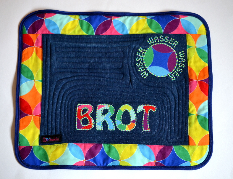 Weil der Stoff schon sehr bunt ist für meinen sechsjährigen habe ich ihn mit unis kombiniert und als Futter eingesetzt.