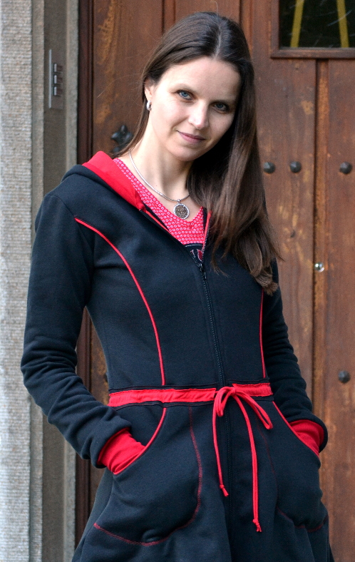 Für mein Wochenende bei Bernina habe ich mir ein Kleid aus Sweat genäht – oder ist es eher eine Jacke? Keine Ahnung. Durch den durchgehenden Reißverschluss konnte ich es oben relativ körpernah nähen und es lässt sich trotzdem super anziehen.