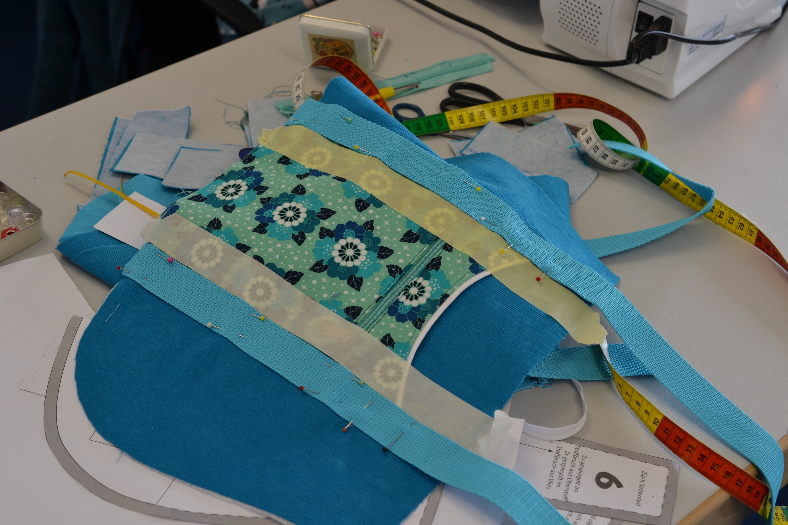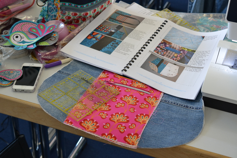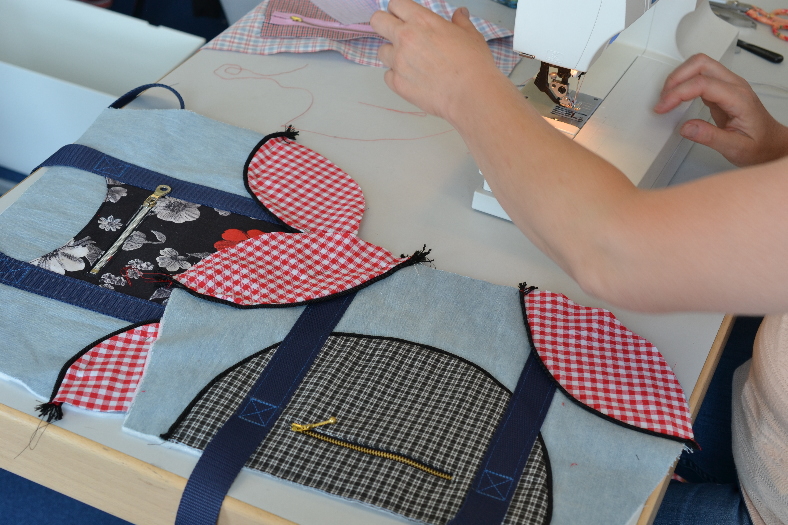 Die Kursteilnehmer haben ganz viele verschiedene Materialien mitgebracht. Vom Wachstuch bis zur recycelten Jeans war wirklich alles dabei.