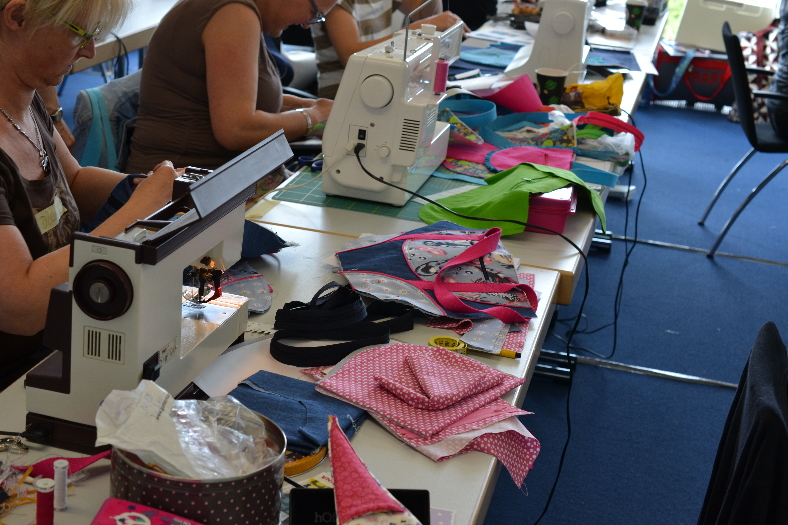 Ich habe Unmengen von Endlos-Reißverschlüssen aufgefädelt oder auch mal aufgetrennt, so dass die Teilnehmer weiter nähen konnten.