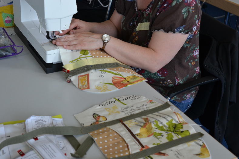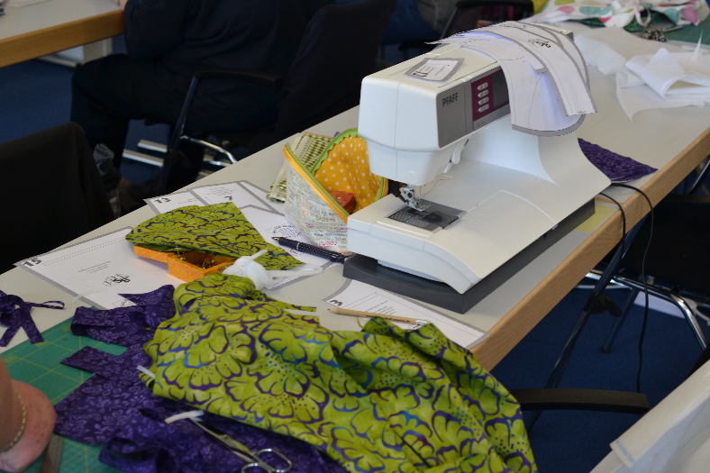 Insgesamt waren die Teilnehmer ziemlich lange mit dem Zuschnitt beschäftigt, aber dann ratterten auch schon endlich die ersten Nähmaschinen.