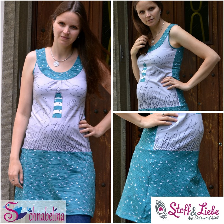 Den schönen Möwenstoff gibt es als Kombi dazu in grau und in türkis/petrol.