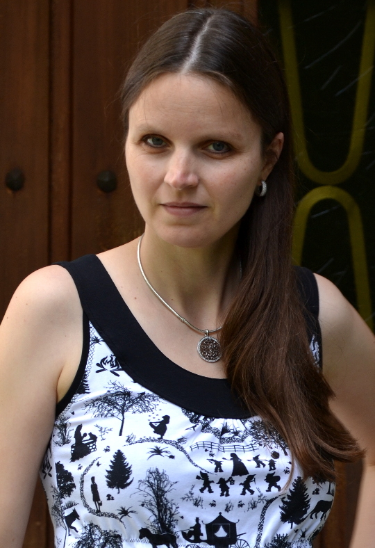 Genäht habe ich hier eine Lady Topas nach dem Freebook von Mialuna. Ich habe den Schnitt etwas angepasst, die Passe vergrößert, ihn stark verlängert und etwas schmäler geschnitten.