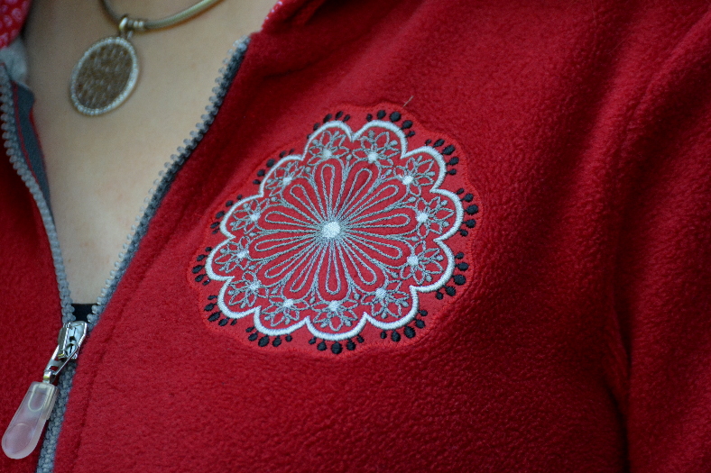 Die rosa Herzen haben mir es besonders angetan. Das Motiv war auch beim der Eigenproduktion “Pavo” mit dabei. Einen weiteren Kombistoff habe ich als Leggins verarbeitet. Die Knopfleiste ist aus der Webkante gearbeitet. Hier könnt ihr Euch mal alle Kombistoffe ansehen.