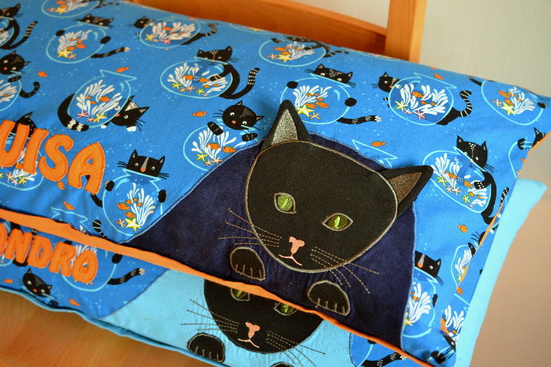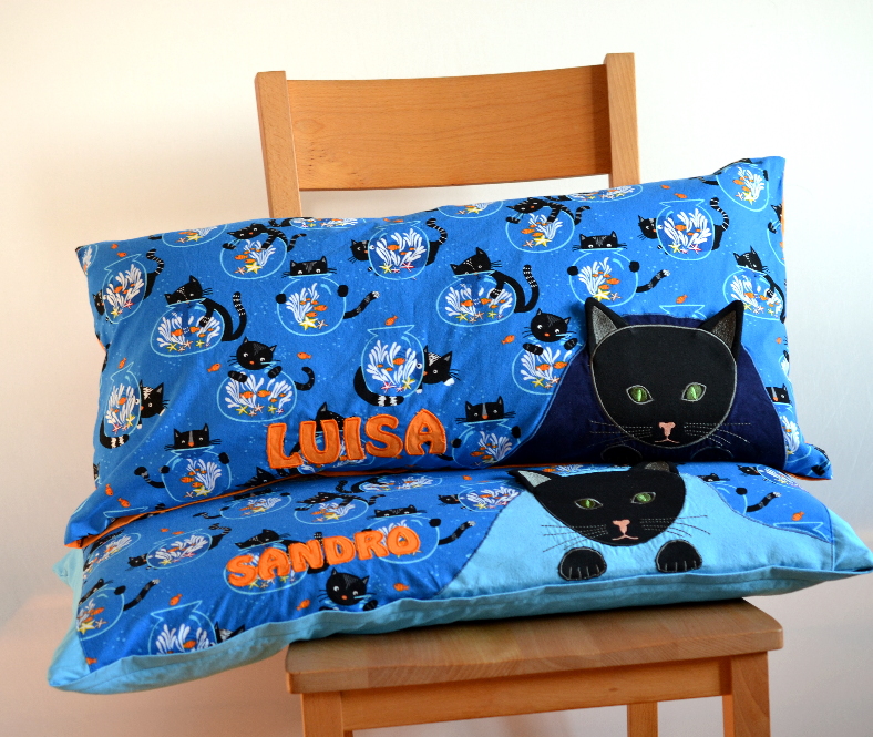 Die Namen sind mit der Stickmaschine appliziert. Die Kissen wurden schon ausgiebig “beschlafen” und für gut befunden! Eine weitere Kissenüberraschung gibt es hier nächste Woche.