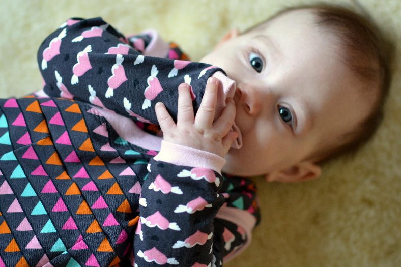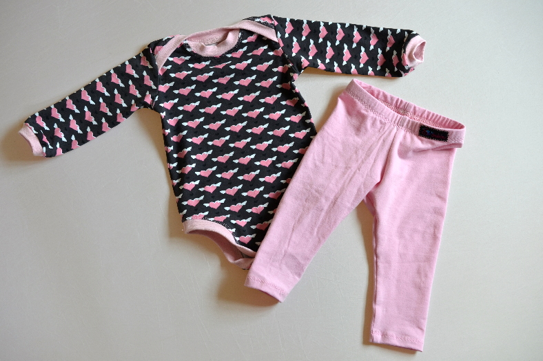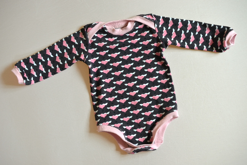Ich liebe diesen Bodystoff mit den geflügelten Herzen. Beide Stoffe stammen noch aus der letzten “kitsch me” Kollektion von Stoff&Liebe.