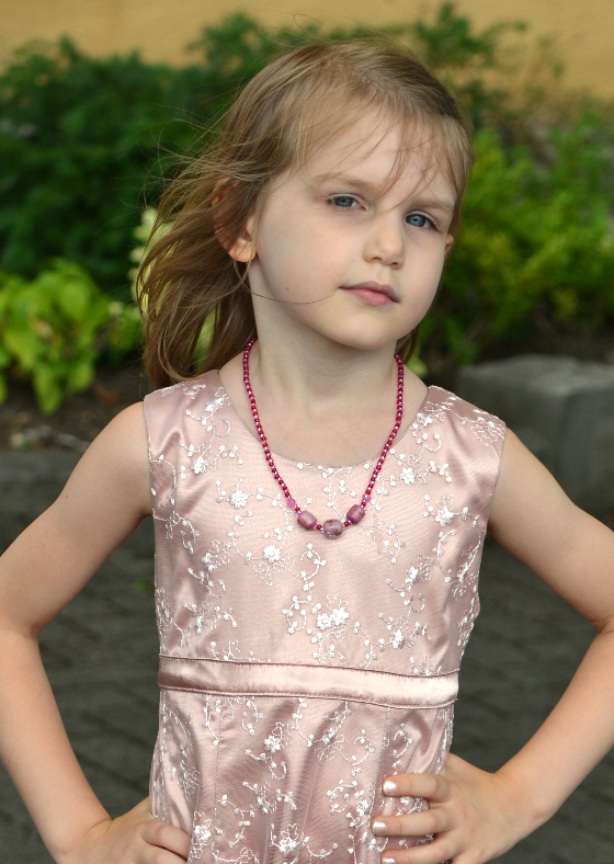 Die schöne Kette hat sie übrigens selbst gefädelt.