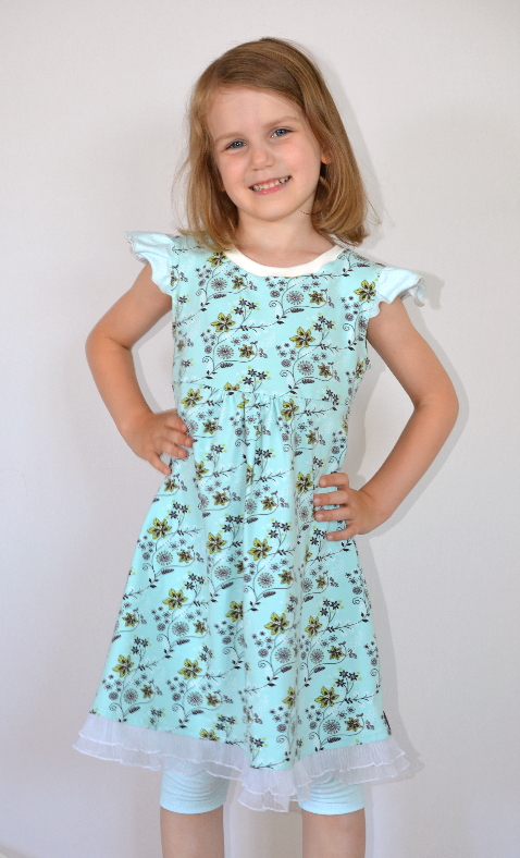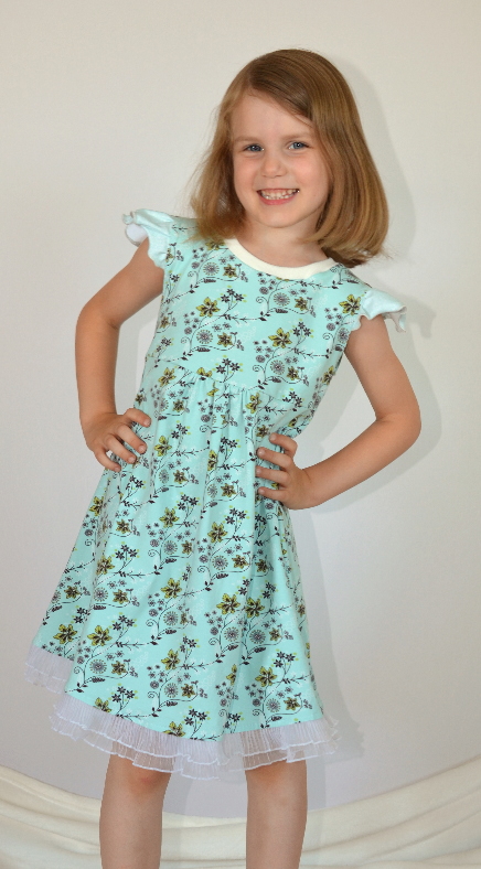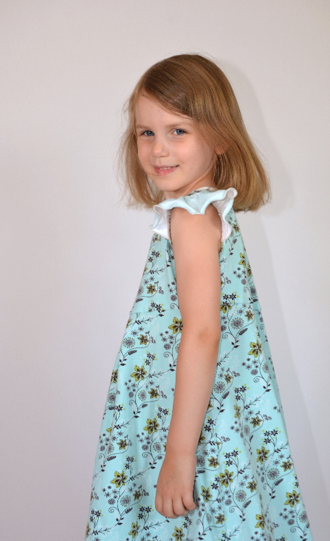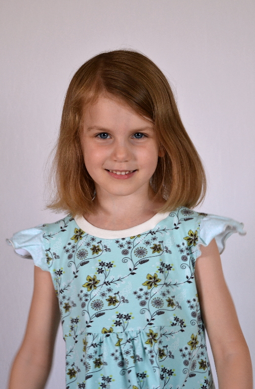 Auch habe ich wieder Bindebänder eingearbeitet. So lässt sich das Kleid perfekt an die aktuelle Weite anpassen und ist dadurch länger tragbar. Von der Größe habe ich 122 genäht, obwohl die Prinzessin erst 115 cm groß ist.