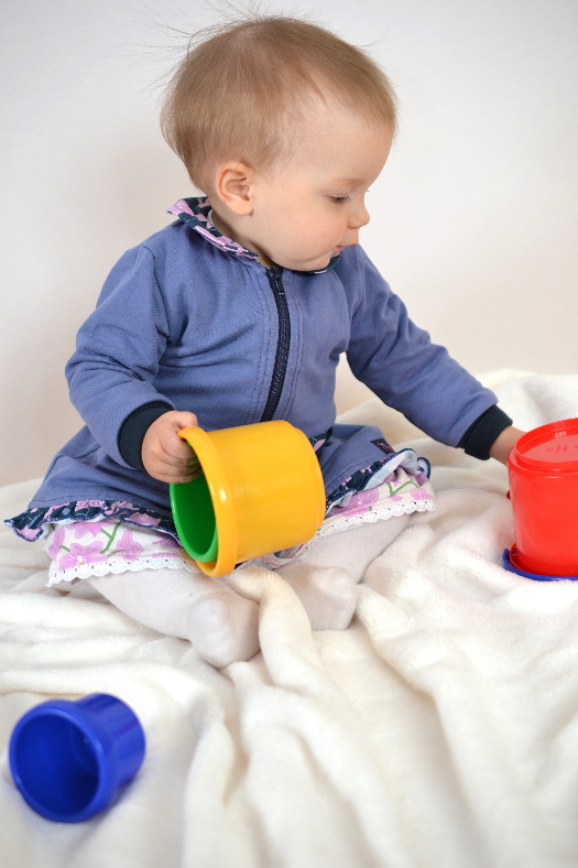 Für sie habe ich zum drunterziehen einen weißen Body und Leggins genäht. Gerade trägt sie aber eine gekaufte Strumpfhose darunter.