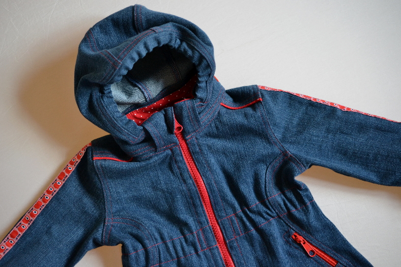 Ich habe deshalb die Jacke von der Machart genauso wie die Softshelljacken der Großen genäht, auch wenn ich normalerweise eine Jeansjacke mit Baumwolle abfüttern würde.