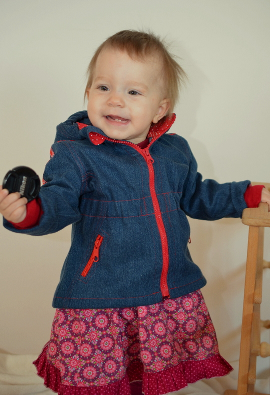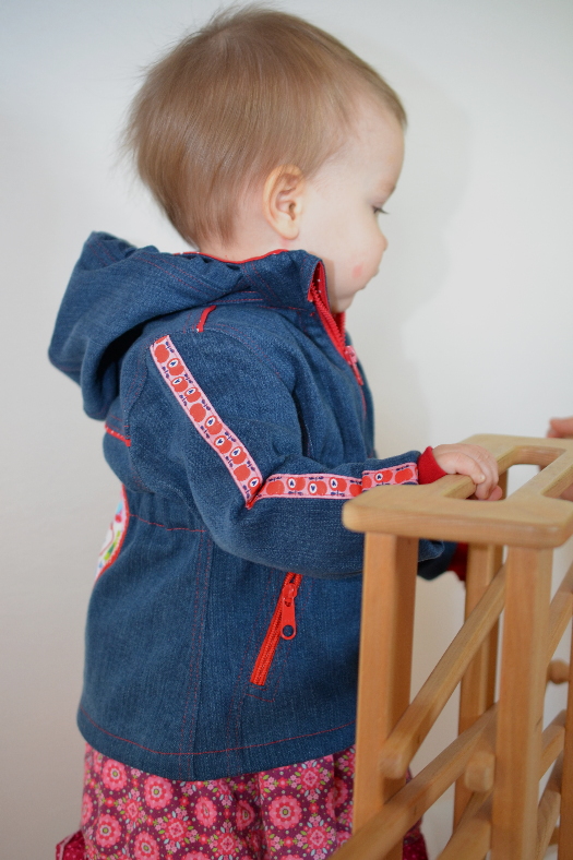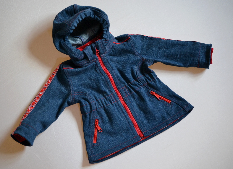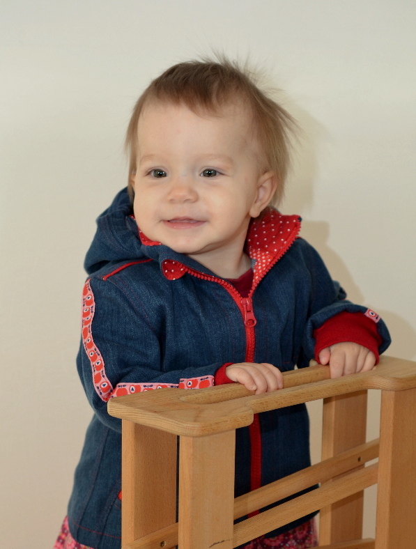 Das tolle an selbst gradierten Schnitten ist auch, dass man das Größenspektrum selbst bestimmen kann. So habe ich die Jacke bis nach Größe 74 runtergradiert, so dass ich auch für das Engelchen eine nähen kann. Das habe ich jetzt endlich geschafft – und zwar mit allem Pipapo!
