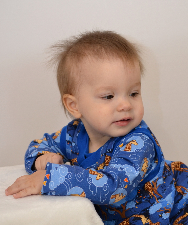 Für die Tochter meiner Freundin habe ich auch gleich ein Set genäht. Ich musste ein bisschen tricksen und ein Rückenteil teilen, damit der Stoff reicht, aber das Mädel hat tolle blaue Augen und ihr wird die Farbe sicher toll stehen.