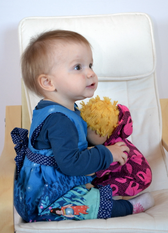 Auch das Engelchen kuschelt schon mal mit ihrer “Sophie” und kann auch schon “Puppe” sagen.
