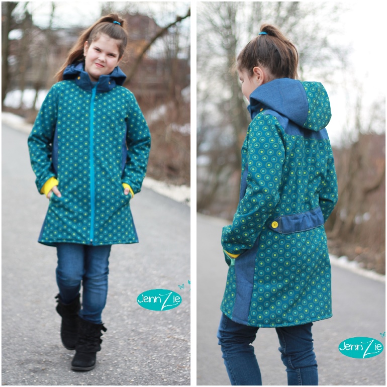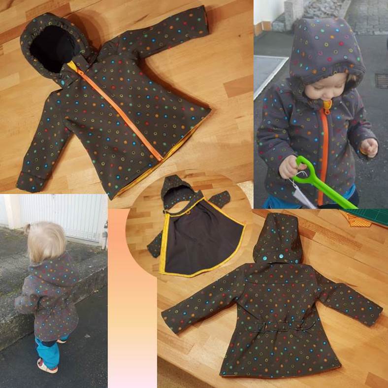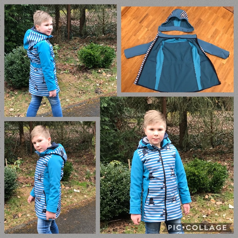 Die gerade Teilung ist besonders für Jungs geeignet. Das Schnittmuster ist identisch mit der weiten Version (also ohne Taille und weite Ärmel), nur die Teilung wurde begradigt, so dass die Jacke nicht so feminin wirkt.