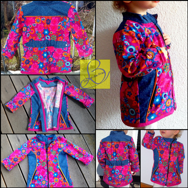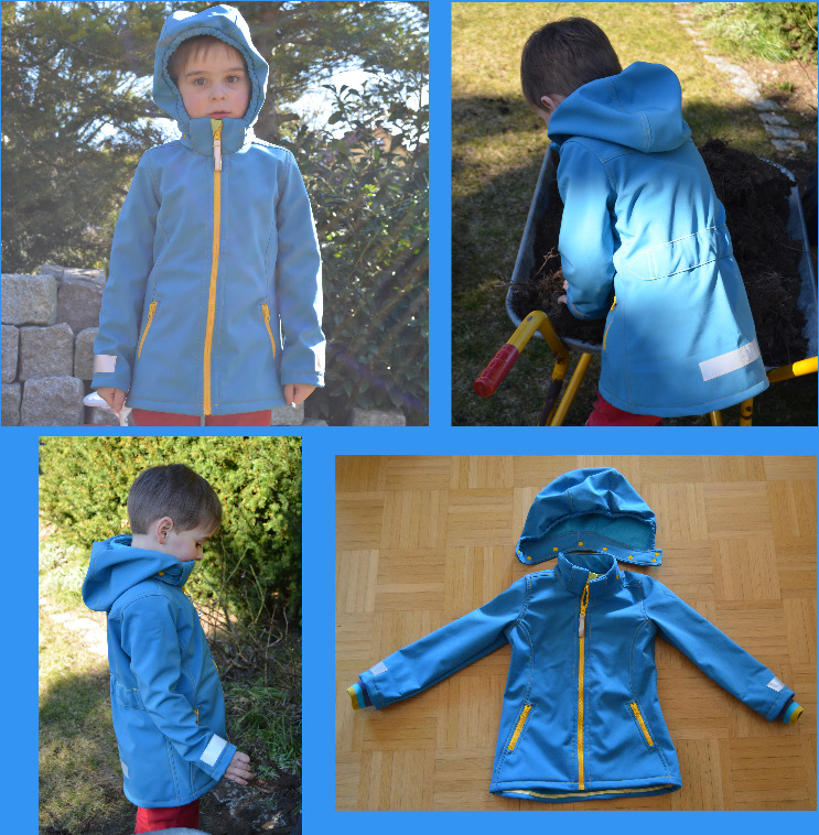 Diese Jacke ist eigentlich für Softshell gedacht. Du kannst sie aber auch aus einem anderen, nicht dehnbaren Jackenstoff nähen. So eignet sich z. B. Jeans oder Cord auch sehr gut für diesen Schnitt. Zusätzlich zum Softshell brauchst Du noch einen dünnen, wasserabweisenden Jackenstoff. Der verhindert, dass die Jacke an vielen Stellen zu dick wird. Wenn Du die Jacke aus Jeans oder Cord nähst, kannst Du statt des Jackenstoffes einen normalen, gewebten Baumwollstoff nehmen.