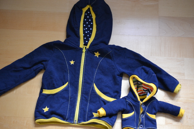 Hier noch mal einen Größenvergleich zu Größe 98 – einer der ersten JaWePus, die ich genäht habe.