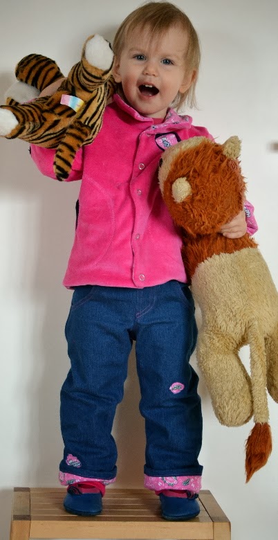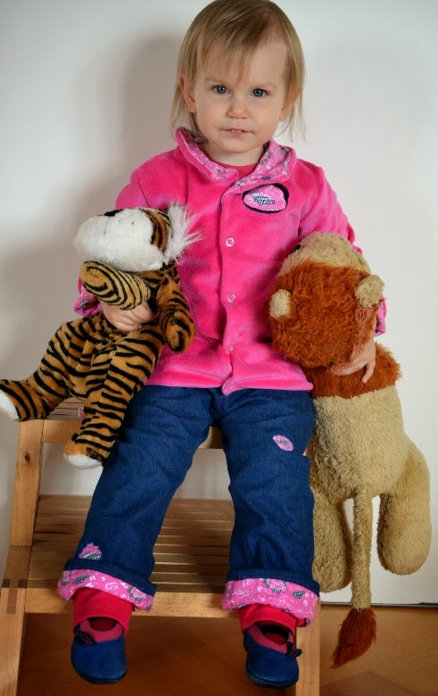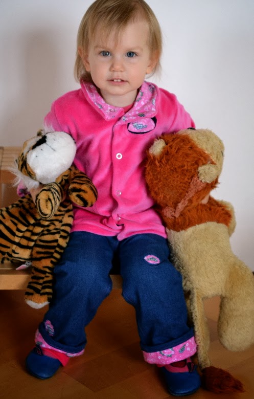 Die Hose finde ich super chic! Würde mir auch sehr gefallen 😉 die Löcher sind ne tolle Idee, und die Sachen stehen Deiner Maus sehr gut.
