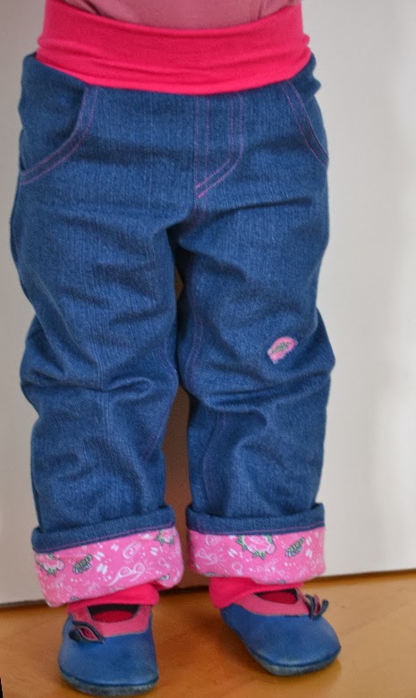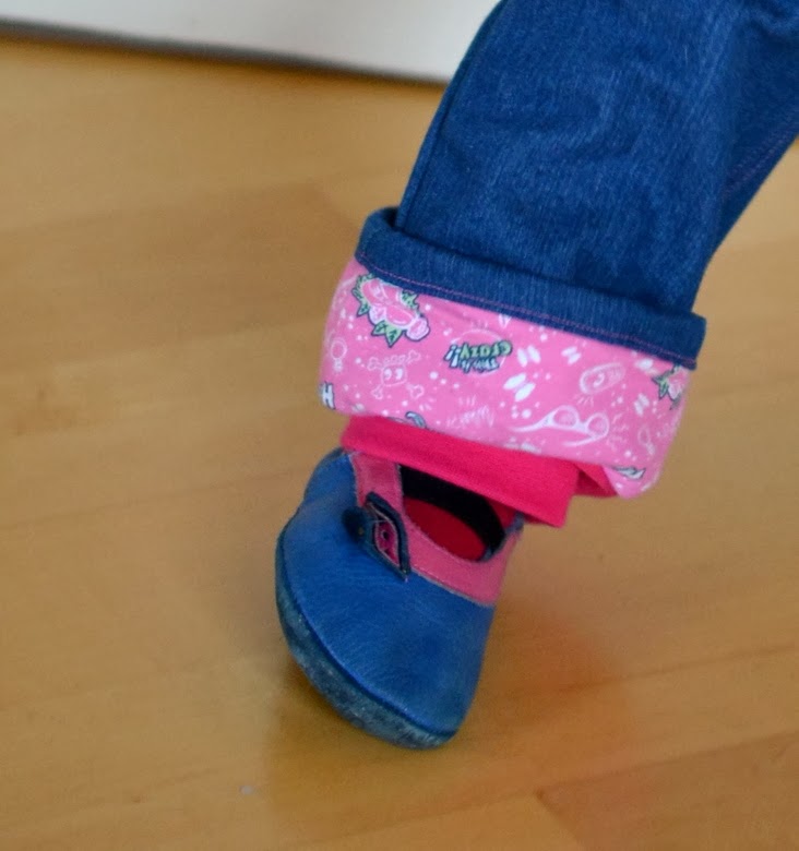 Die Hose ist toll zum mitwachsen. Ich habe in das Futter noch ein Bündchen integriert, so zieht es nicht von unten rein und die Hose lässt sich super hochkrempeln. Da kommt dann auch das Futter zu Geltung.