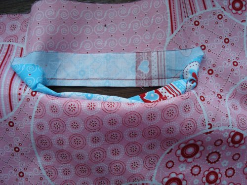 Den Stoff für die Tasche durch das Loch nach hinten ziehen
