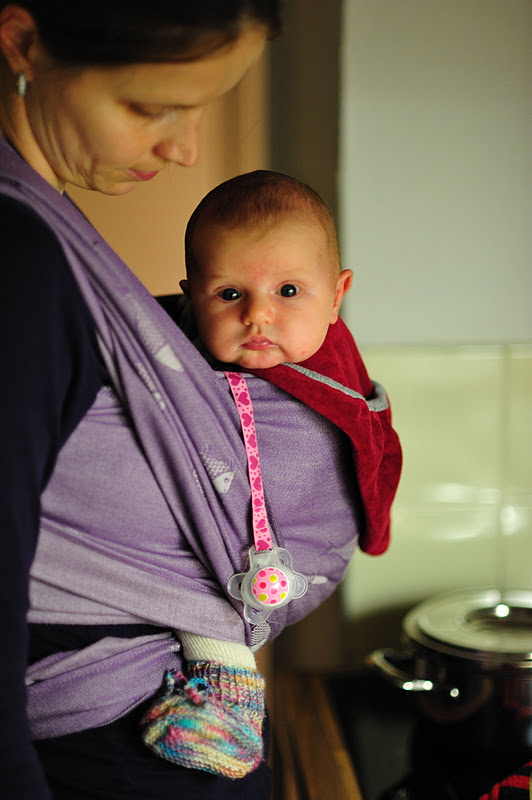 So verbringt Luisa einen großen Teil des Tages – getragen. Von mir im Tragetuch. So kann ich mit dem Großen kochen und den Haushalt bewältigen.