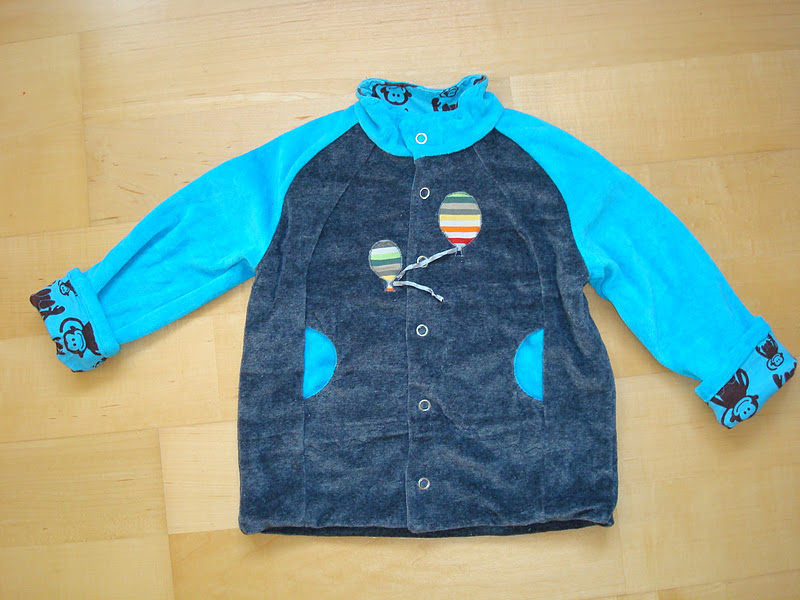 Die Farben kommen leider nicht so wirklich rüber. Es ist ein wunderschönes dunkelgrau mit türkis. Innen habe ich mit einem türkisen Affenjersey gefüttert.