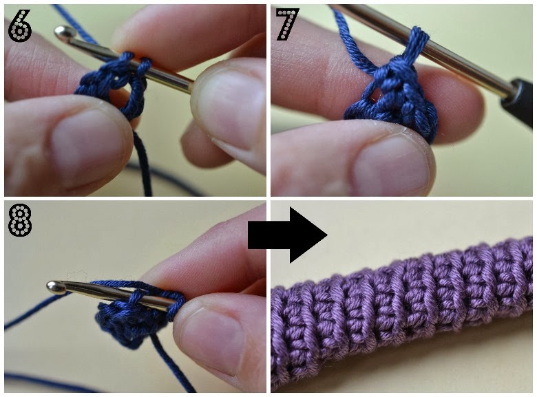 5. für einen breiteren Schlauch 8 Luftmaschen, für ein schmalen 6 Luftmaschen.