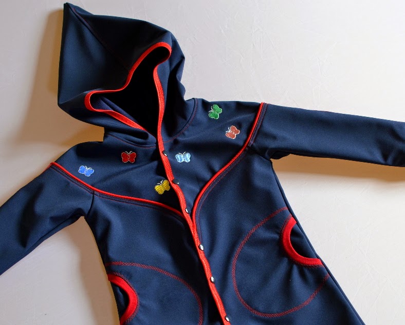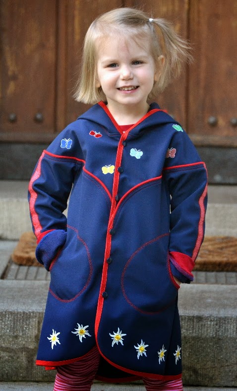 Der Mantel ist total niedlich. Die Stickereien sind wunderschön, viel schöner als bedrucktes Softshellmaterial. Da hat dein Prinzessichen ein tolles Teil.
