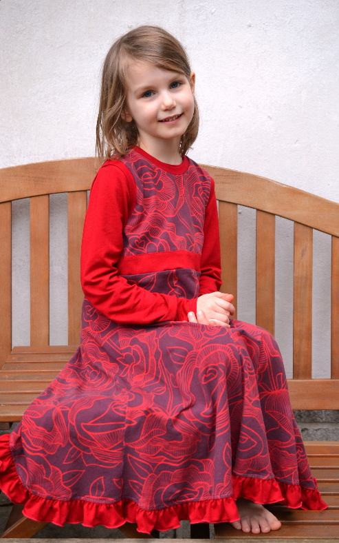 Eigentlich wollte ich den wunderschönen Rosenstoff in rot für mich vernähen, aber meine große Tochter hatte da andere Pläne.
