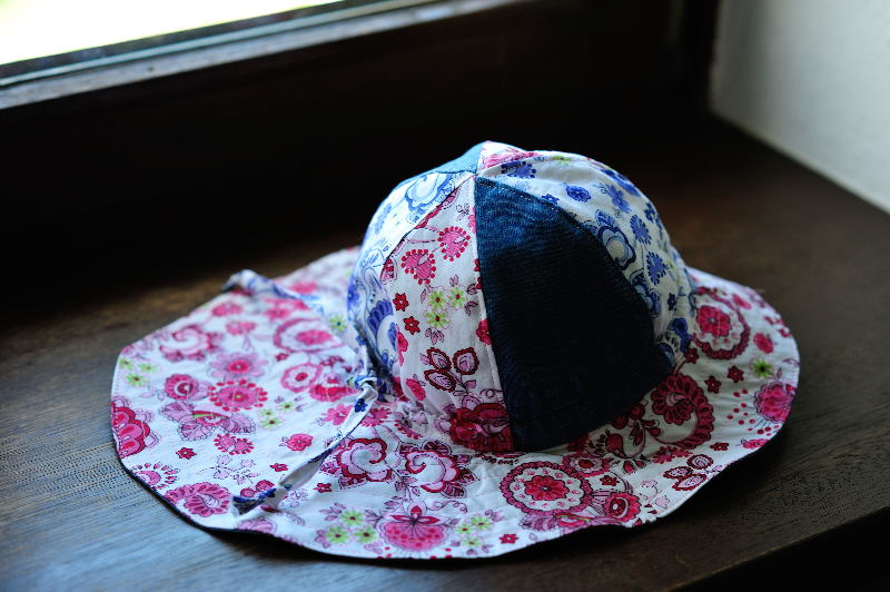 Hier habe ich den wunderschönen Stoff den mir Kim geschenkt hat angeschnitten. Eine traumhafte Popeline. Wie geschaffen für Sommerhüte.