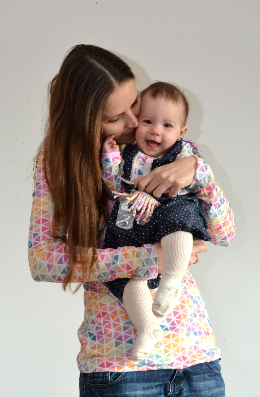 Heute schaffe ich es mal wieder pünktlich, bei rums dabei zu sein. Ich bin ja momentan dabei, meinen Kleiderschrank mit selbstgenähtem aufzufüllen. Deshalb gibt es heute mal wieder ein Shirt von mir. Wie immer nach eigenem Schnitt. Und weil mir der Stoff (gibt es bei snaply) gar so gut gefällt habe ich gleich noch eine Kombi für mein kleines Mädel daraus genäht.