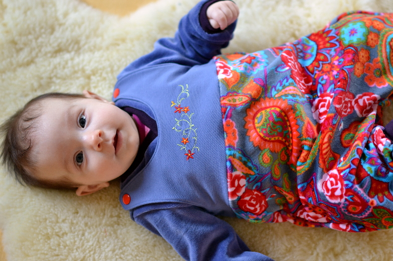 Ich habe dafür einen Nicky verwendet, den ich noch aus der Babyzeit von der Prinzessin im Schrank hatte. Der Nicky ist von Stenzo und ich mag ihn wirklich sehr gerne, man muss ihn nur dezent kombinieren, sonst ist er mir zu bunt.