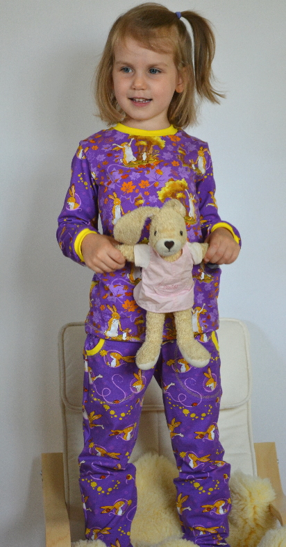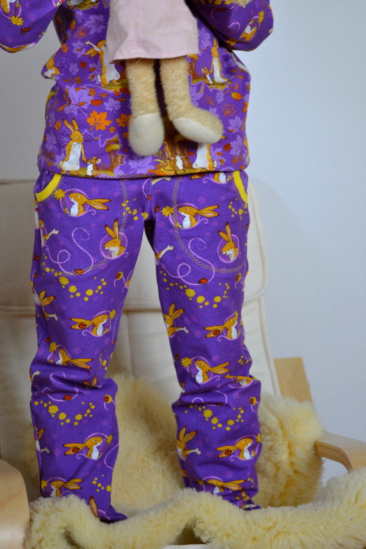 Die schmal geschnittene Hose ist wirklich perfekt für Schlafanzüge. Ich habe jetzt auch endlich mal geschafft, den Schnitt fertig zu stellen. Zumindest bis Größe 146. Ich werde ihn die nächsten Tage mal hochladen. Leider habe ich noch nicht die ganzen Designbeispiele sortiert. Die reiche ich dann mal nach. Durch die Schwangerschaft geht hier alles ein bisschen (viel) langsamer.