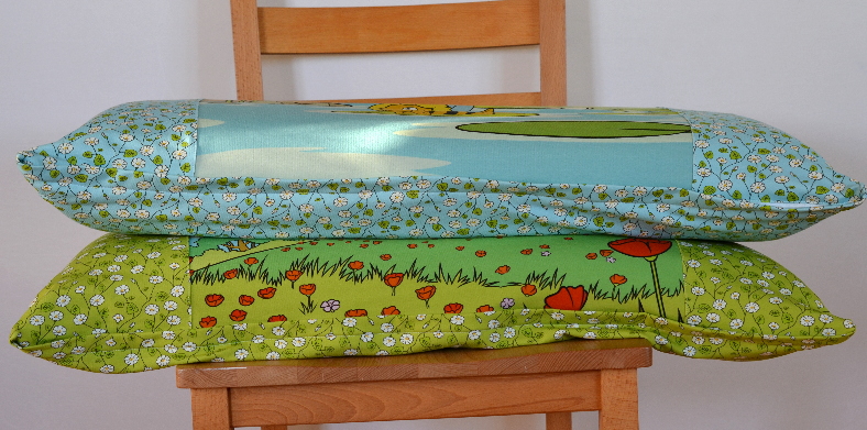 Hinten habe ich hier wieder Sweat verwendet. Diesmal habe ich das Binding allerdings aus Webware gemacht. Das Jersey-Binding bei der letzten Decke hat mich einfach zu viele Nerven gekostet.